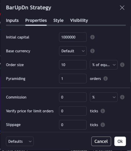 7. The next step is to configure the order sizing parameters. Click the Settings Button to configure your strategy.