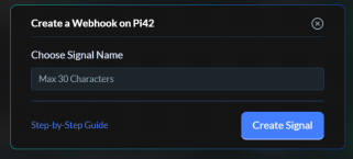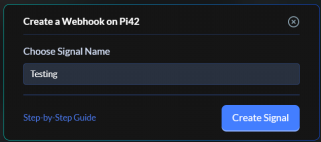 2. Click on Create New Webhook, it will open up a modal. Choose a signal name. For example, “Testing” and click create signal.